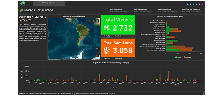 Por último, la consolidación de información considera Viveros y Semilleros. Este reporte presenta información referente a las instalaciones destinadas en la producción de plantas y semillas necesarias para el cultivo de la producción agrícola. Considerando, además, que estas se relacionan directamente con el cultivo, germinación e inclusive en la cosecha de plantas vegetales, frutales, marinas, entre otras, ya sea, con fines comerciales o de autoconsumo. Los datos provienen desde el Servicio Agrónomo y Ganadero (SAG) a nivel nacional para las siguientes temáticas: Viveros periodo 2021 y Semilleros periodo 2021-2022.