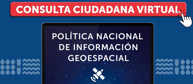 El Ministerio de Bienes Nacionales, a través de la IDE Chile (SNIT) inicia el proceso de participación ciudadana de la propuesta de “Política Nacional de Información Geoespacial”, con el propósito de conocer la opinión pública sobre lo que será esta propuesta de Política, con el objetivo de enriquecer el documento final, aplicando los principios propuestos de participación y transparencia.