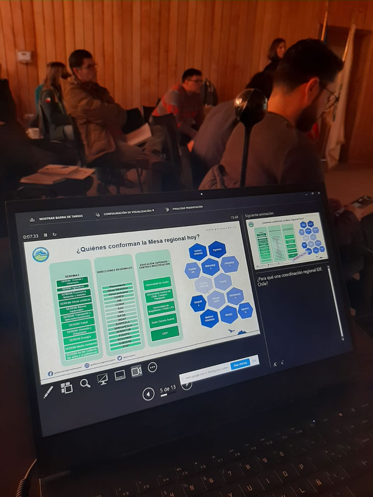 En dependencias del Gobierno Regional de Aysén, el jefe de la División de Planificación y Desarrollo Regional, Sr. Francisco Lara, junto a la coordinadora regional IDE, Valentina Ortiz, lideraron la primera sesión del año de mesa regional IDE, quienes también han llevado a cabo el trabajo de identificar y oficiar a las instituciones regionales, realizar un levantamiento de las necesidades, brechas y oportunidades en materia de información geoespacial de la mesa regional y de convocarlos a la primera sesión, la que marca un hito del trabajo que se plantearán para este año.