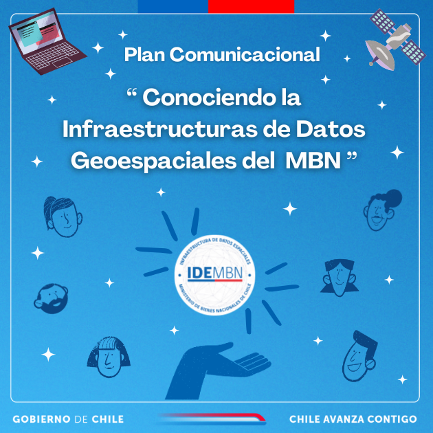 Durante 2024, la Infraestructura de Datos Geoespaciales del Ministerio de Bienes Nacionales (IDE MBN) lanzó su campaña comunicacional "Conociendo la IDE MBN". El objetivo fue generar material informativo, como boletines y cápsulas de video, para difundir el propósito, las labores y los productos desarrollados por la IDE MBN, consolidándola como una herramienta clave para la gestión de datos geoespaciales en el Ministerio.