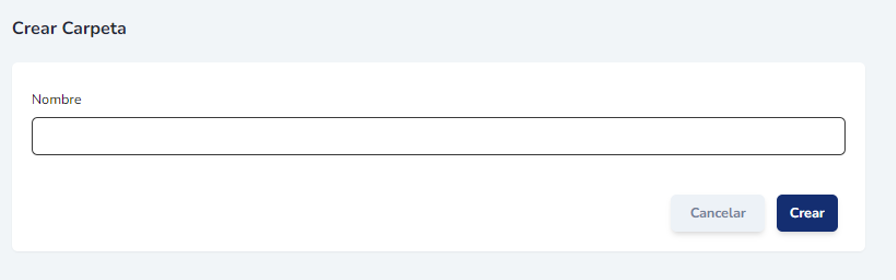 Permite crear carpetas para organizar los archivos y mantener su orden. Debe indicar un nombre para la carpeta.