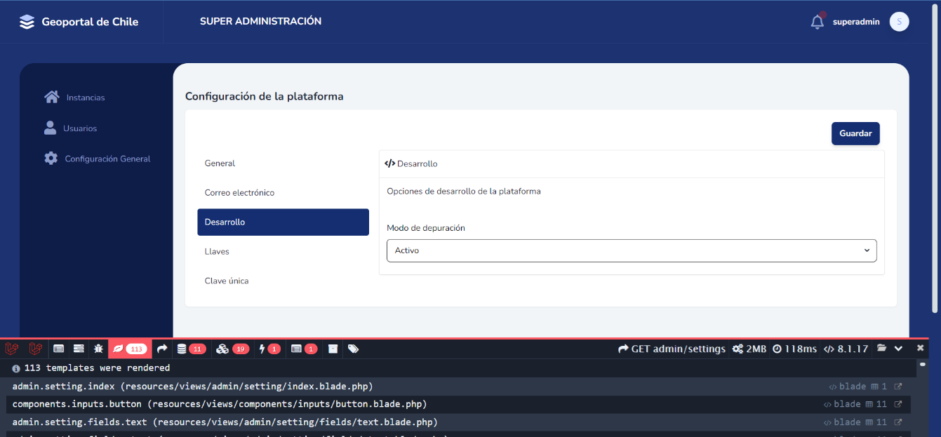 Por defecto esta opción esta inactiva, pero a través del siguiente formulario, puede activar el modo de depuración.