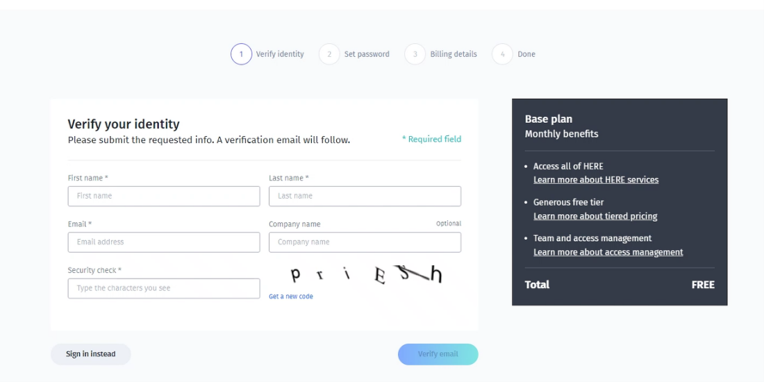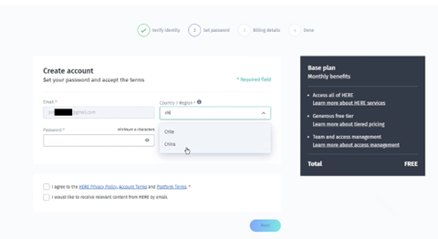 Luego de verificada su identidad, podrá crear la cuenta de usuario en Here.
