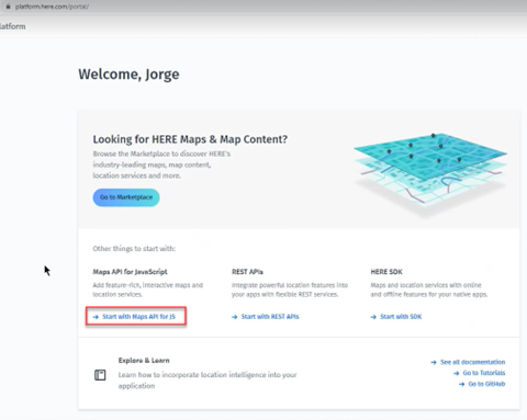 Deberá seleccionar la opción “Start with Maps API for JS”.