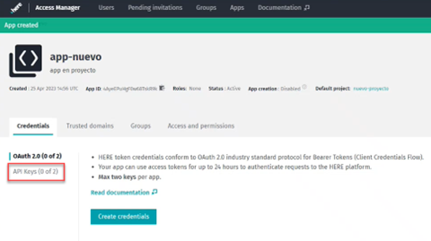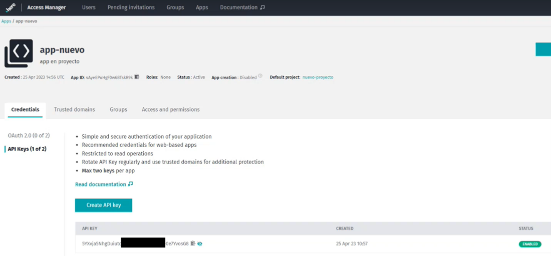 Clic en el botón “Create API key”, para generar el código que requiere Geonodo.
